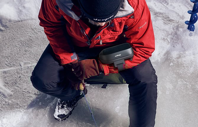 The Deeper Winter Smartphone Case 2.0 is designed to keep your smartphone protected, secure, and easily accessible during cold-weather and ice fishing conditions. With an adjustable arm strap and durable insulated materials, it allows you to use your phone comfortably even in extreme winter environments.