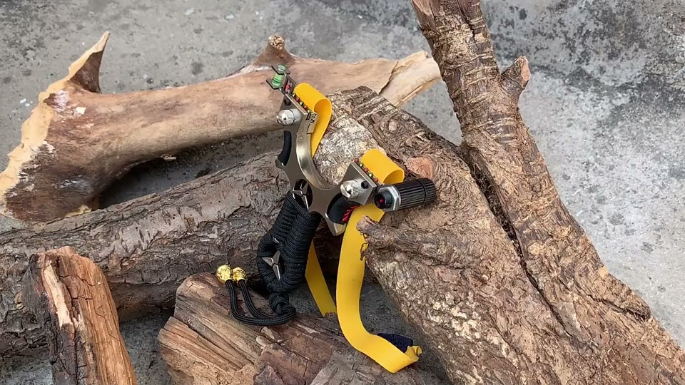 - This slingshot is equipped with laser sight and a horizontal sight, with high shooting accuracy