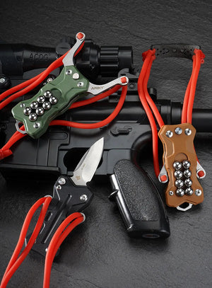 - 2-in-1 Design: Combines a compact slingshot and a sharp knife, perfect for outdoor adventures.