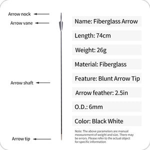 SPG 6mm Kids Fiberglass Blunt Arrow 74cm – Safe Archery Practice