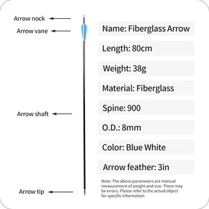 SPG 8mm Fiberglass Arrows 80cm Spine 900 Target Practice Arrows