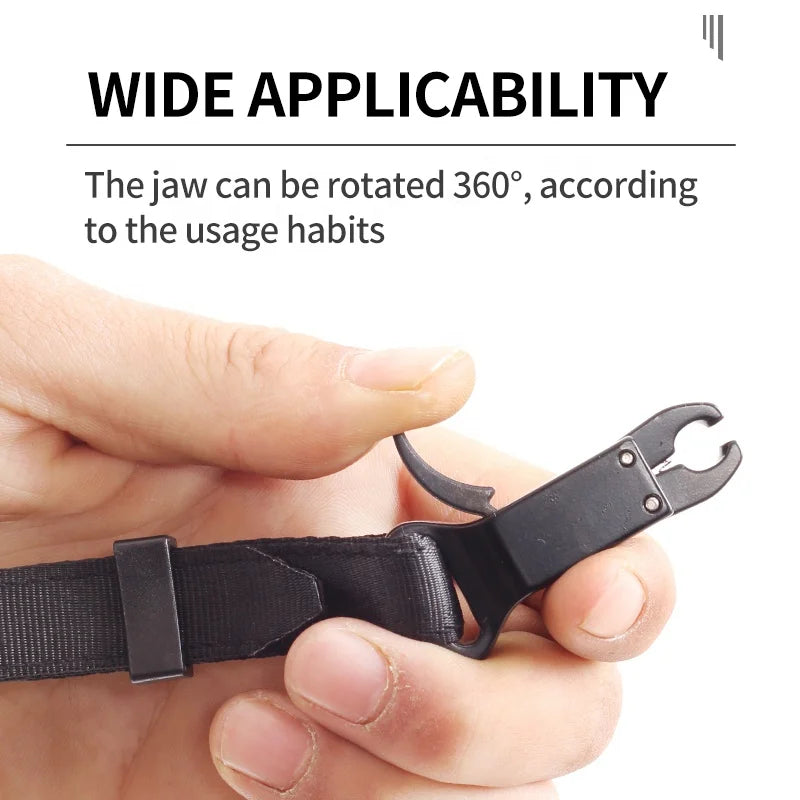 This bow release features a durable metal trigger head with full 360° rotation, paired with a strong Oxford cloth wrist strap for stability and comfort. Designed for both right and left-hand users, it offers smooth trigger action and adjustable fit, making it ideal for compound bow users up to 65 lbs.