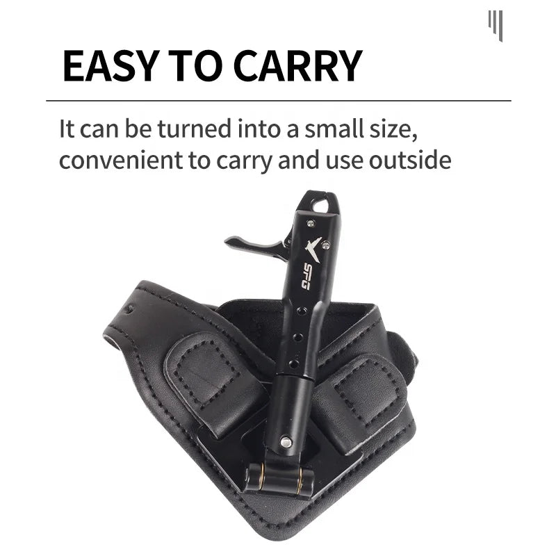 The SPG Metal + Leather Bow Release is designed for stability, comfort, and precision. Its advanced 360° rotating trigger head, durable metal jaws, and padded leather wrist strap ensure a smooth release and consistent performance. Suitable for both beginners and experienced archers looking for reliable control and comfort.